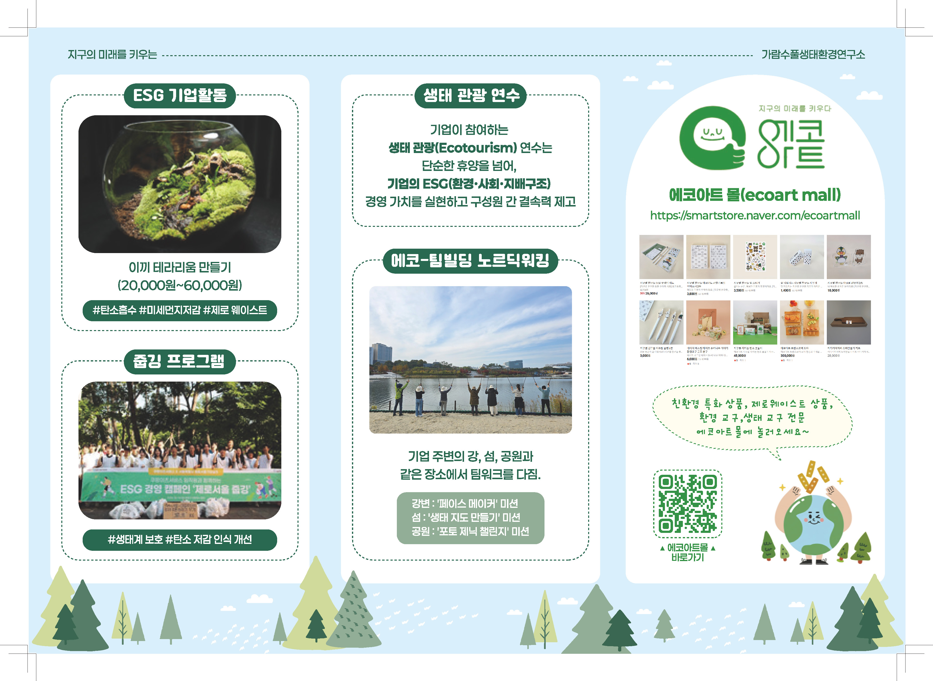 · 환경교육 키트 개발(eco-art) 제조, 환경가치 상품 개발 제조 보급 수행 |