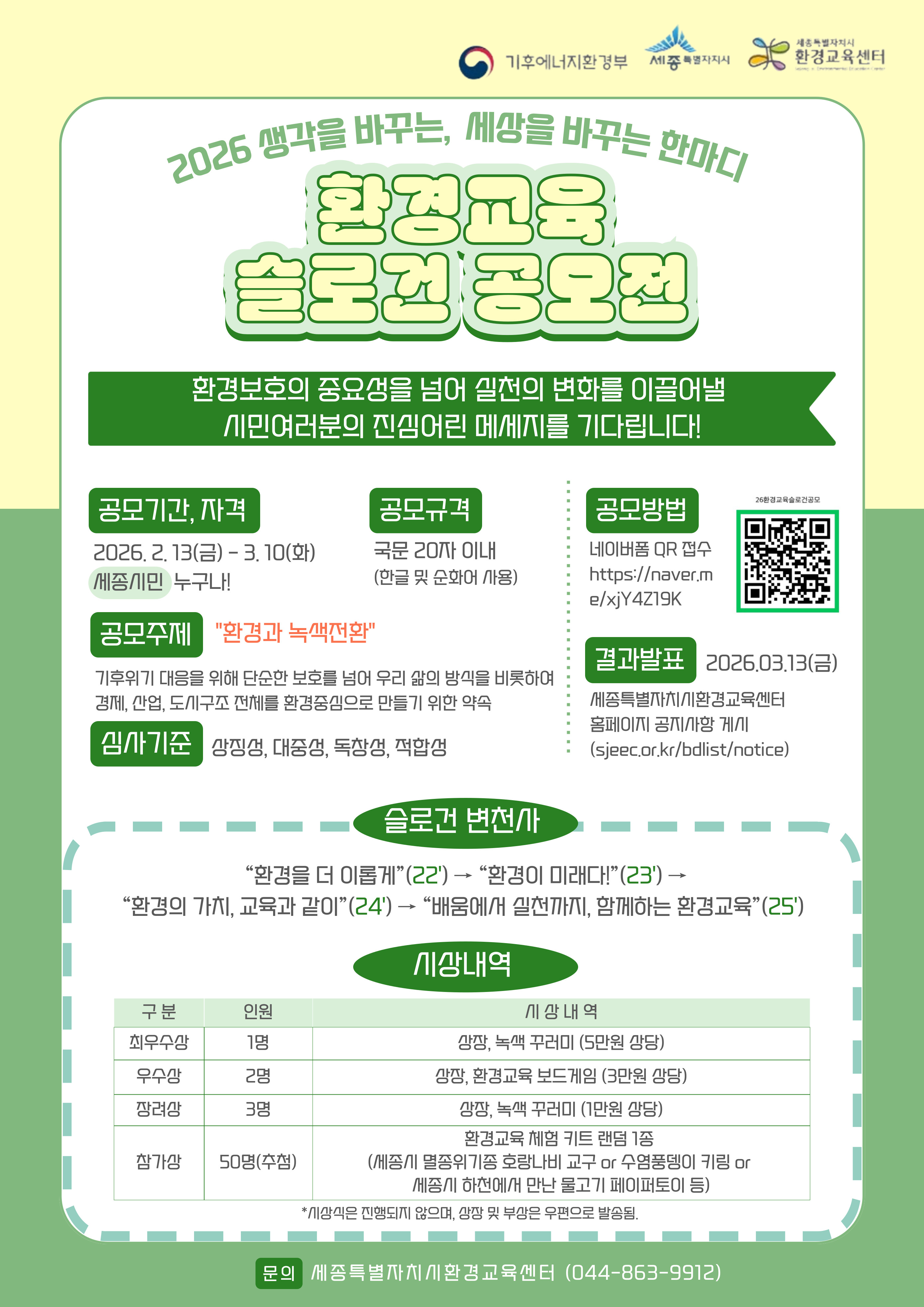 026 생각을 바꾸는 한마디, 세상을 바꾸는 세종시 환경교육 슬로건 공모전