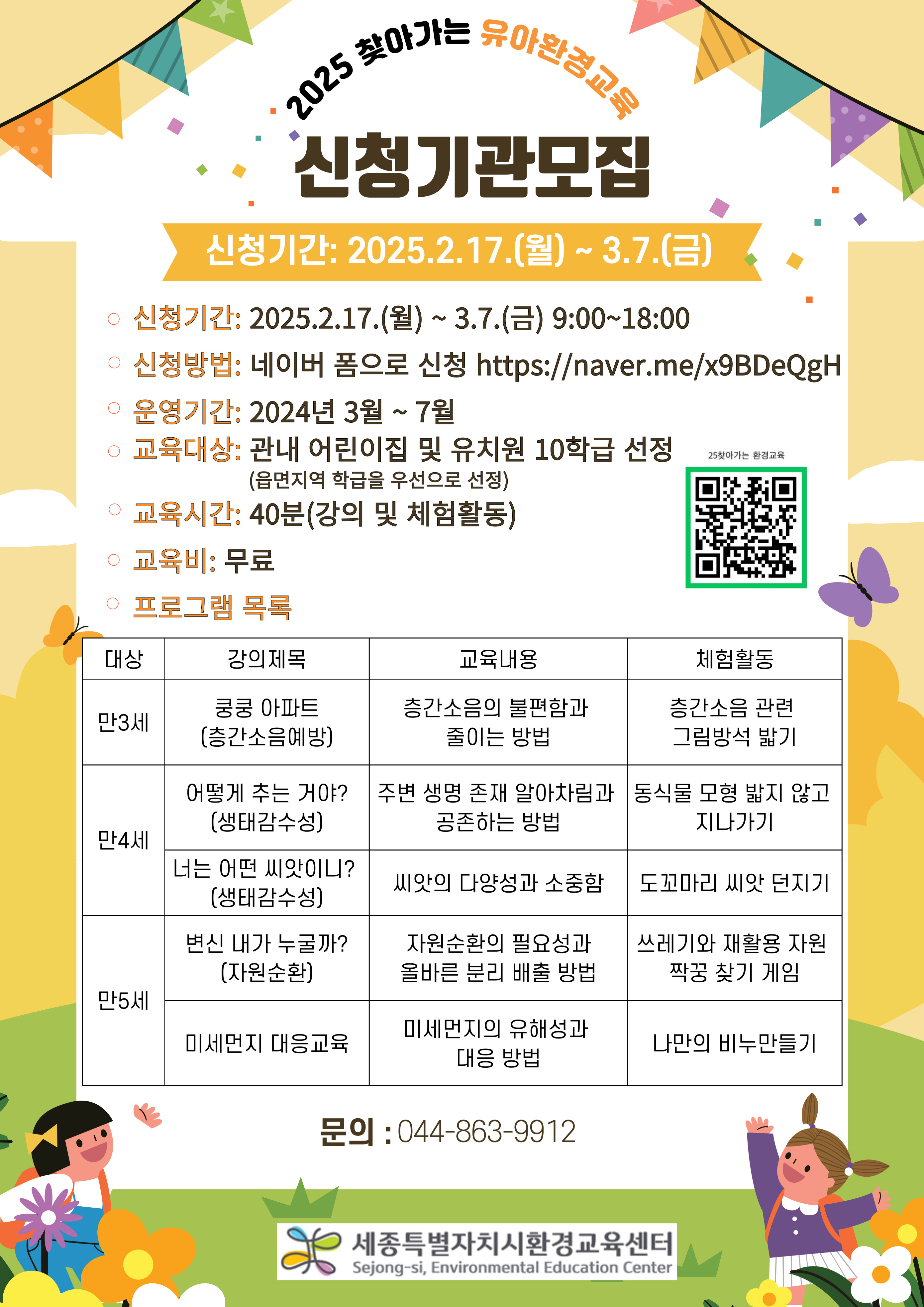2025년 찾아가는 유아환경교육 신청기관 모집